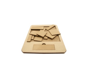 Jeu réalisé avec une découpe laser et du médium, collage avec colle à bois, teinture avec du brou de noix. Conçu en France, en Limousin, en Haute-Vienne.