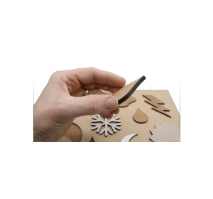 Jeu réalisé avec une découpe laser et du médium, collage avec colle à bois, teinture avec du brou de noix. Conçu en France, en Limousin, en Haute-Vienne.