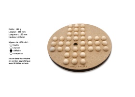 Jeu en bois du solitaire en version asymétrique avec 38 billes en bois.